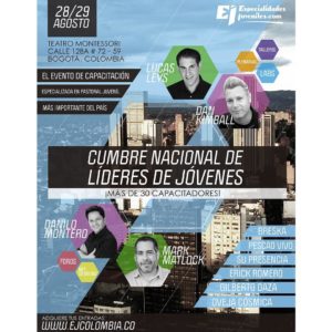Si estas en Colombia no puedes perder la oportunidad de asistir a la Cumbre Nacional de líderes de Jóvenes que organiza Especialidades Juveniles. Esta sera la primera cumbre que